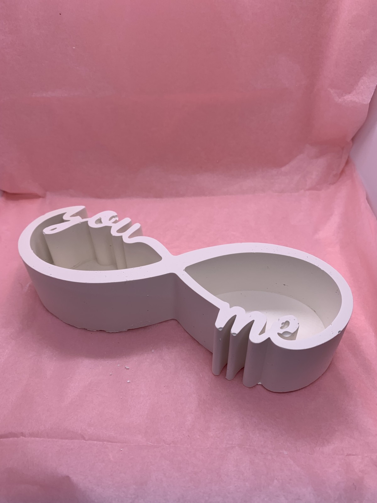 Apportez une touche romantique et symbolique à votre espace avec ce plateau décoratif en forme d’infini, orné des mots "You" et "Me". Parfait pour exprimer l’amour ou l’unité, cet accessoire combine design moderne et polyvalence.